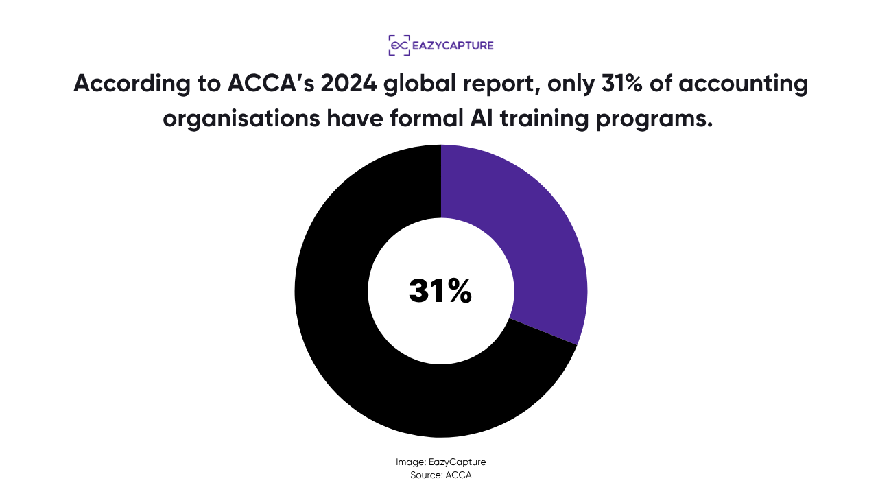According to ACCA’s 2024 global report, only 31% of accounting organisations have formal AI training programs.